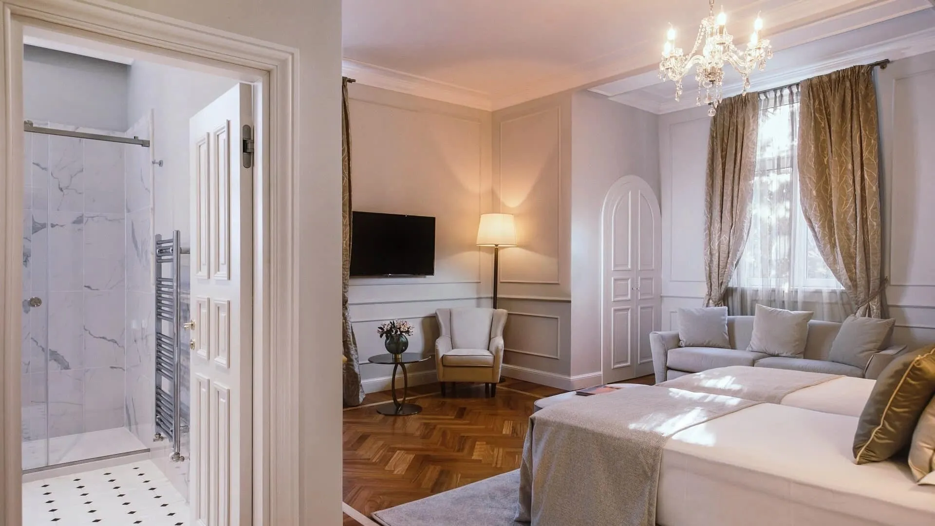 Hotel Milenij Sveti Jakov is a luxurious five-star hotel designed in a historic style, offering elegant rooms adorned with parquet flooring and period furniture. Centrally located along the seafront promenade in Opatija, it provides stunning views and convenient access to local attractions.